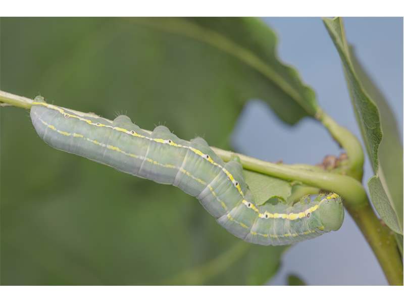 Die Falter fliegen jährlich in einer Generation von Anfang April bis Ende Mai. Die Weibchen legen ihre Eier in kleinen Gruppen an das Ende von Eichenzweigen (Quercus). Die Raupen fressen von Mai bis Juni. Die Verpuppung erfolgt in einem festen, hellbraunen Gespinst.