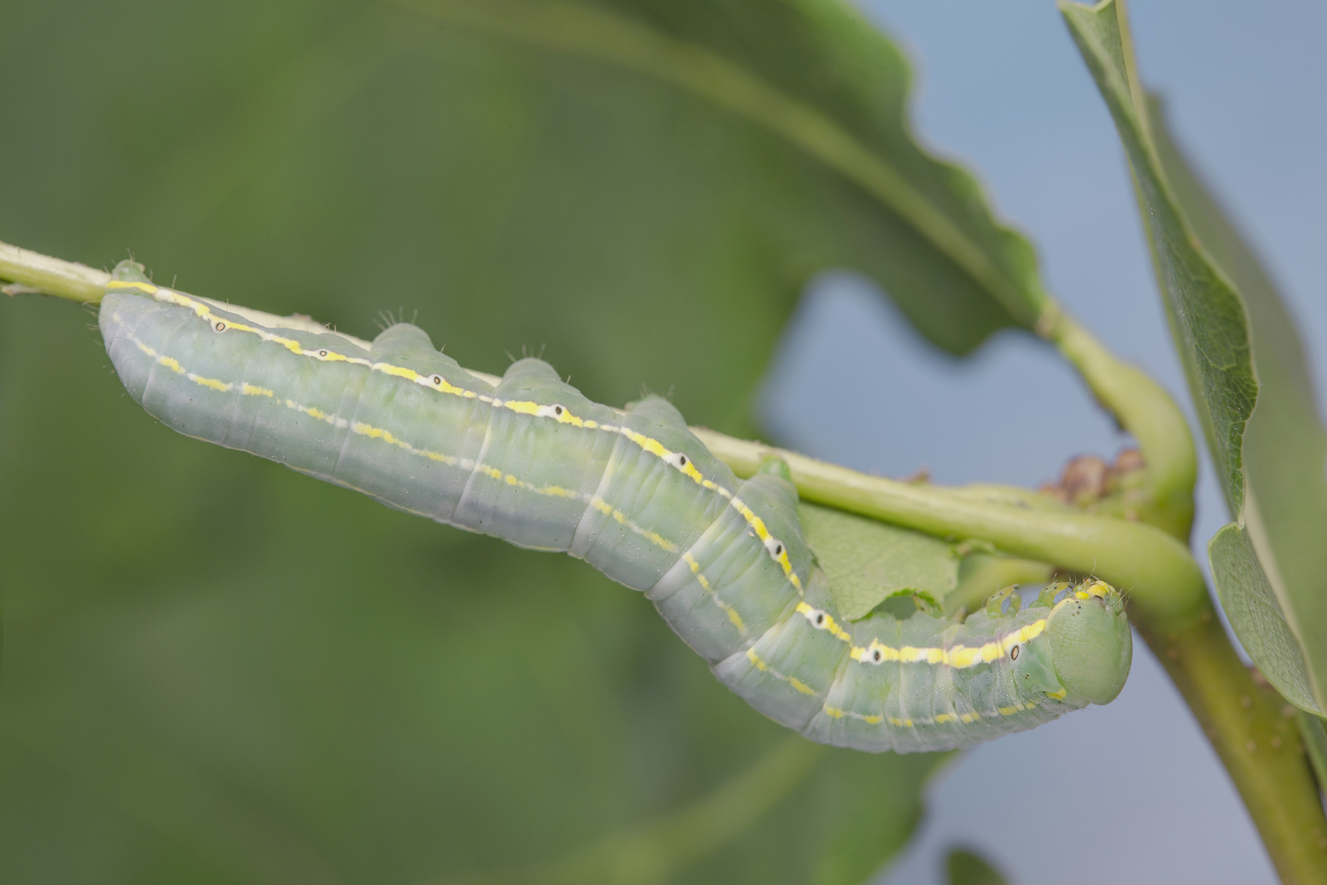 Die Raupe ist hellblaugrün und hat eine matte, grüne Kopfkapsel mit sattgelben Mundwerkzeugen. Sie trägt jeweils eine gelbe subdorsale und lateral Linie; letztere ist um die schwarzgerandeten Stigmen herum verbreitert ist. Verwechslungsgefahr besteht bis zum vorletzten Stadium mit der Raupe von Ptilophora plumigera, die jedoch keine gelbe Seitenlinie besitzt. Im letzten Stadium wiederum kann sie mit der Raupe von Leucodonta bicoloria verwechselt werden, die jedoch eine glänzende Kopfkapsel besitzt und ausschließlich an Birke (Betula) frisst.