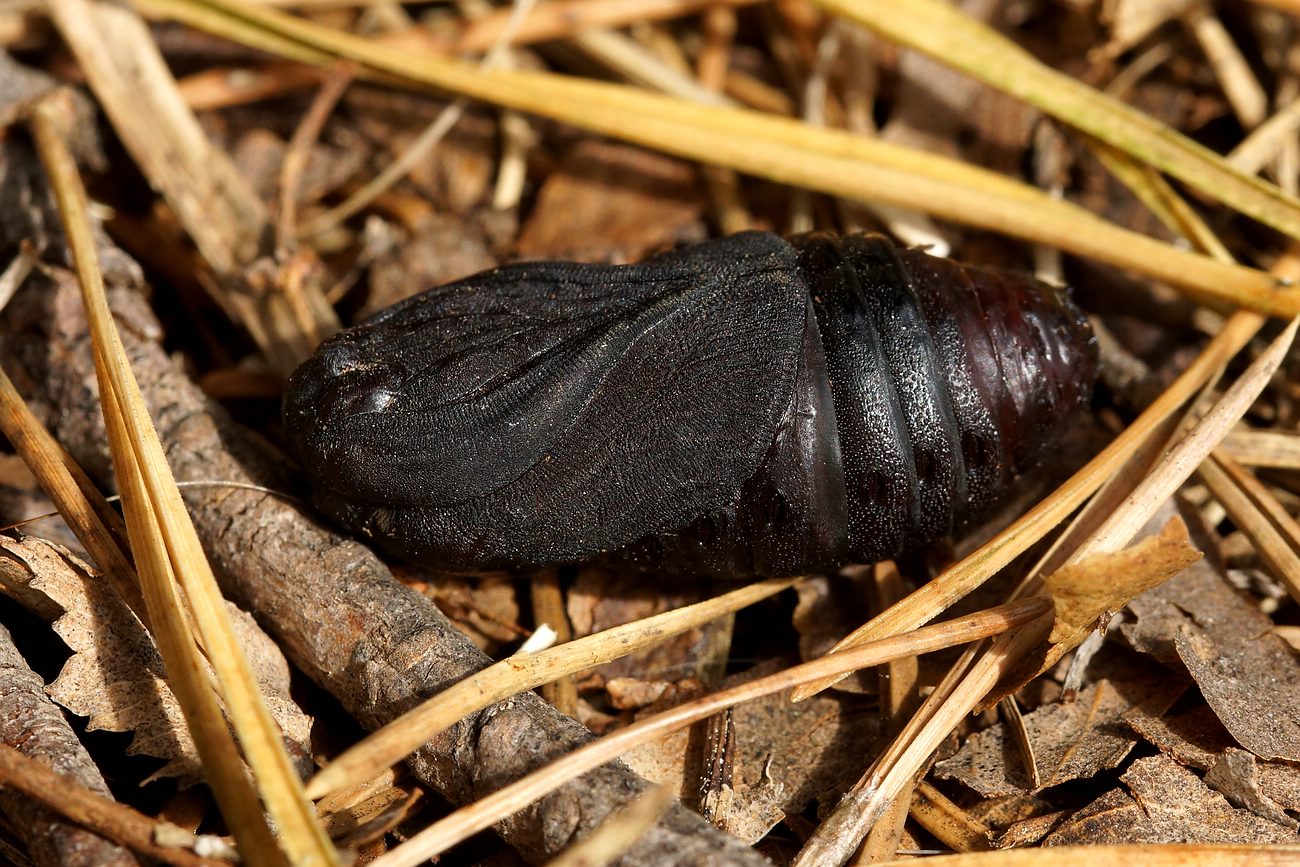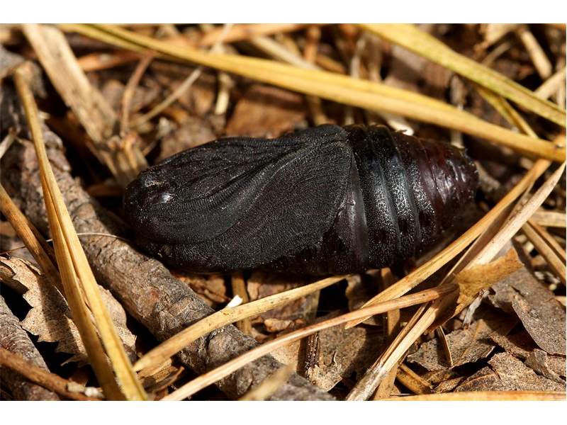 Zur Verpuppung baut die Raupe am Fuße von Baumstämmen einen festen, dickwandigen Kokon aus Seide und Borkenstückchen, der bis 40 mm lang ist. Die Puppe überwintert.