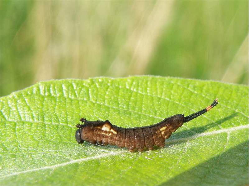 Die Puppe ist dunkelrotbraun. Bein- und Fühlerscheiden treten deutlich hervor. Ihr Abdominalende ist stumpf mit einem feinen Häkchenfeld.
