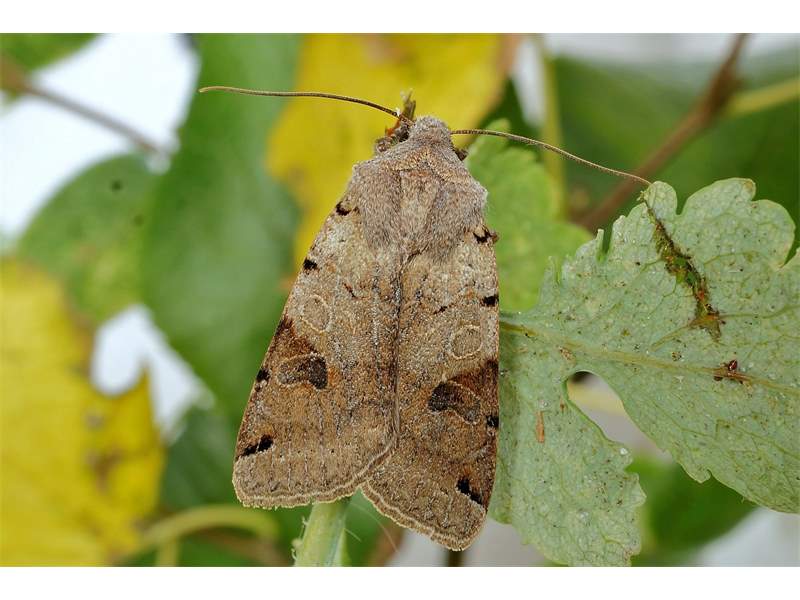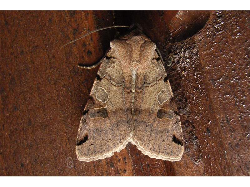 Vorderflügel: Die Färbung variiert individuell von hellgrau über hellbraun zu dunkelbraun. Am Vorderrand beginnen alle Querlinien mit braunschwarzen Flecken.