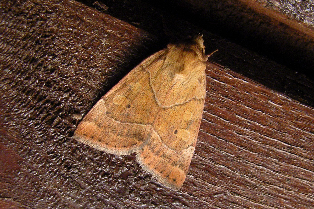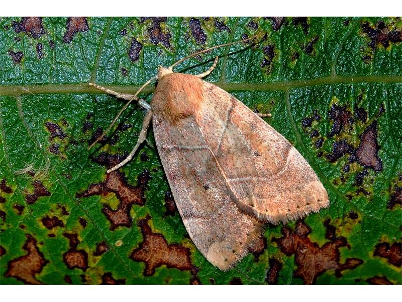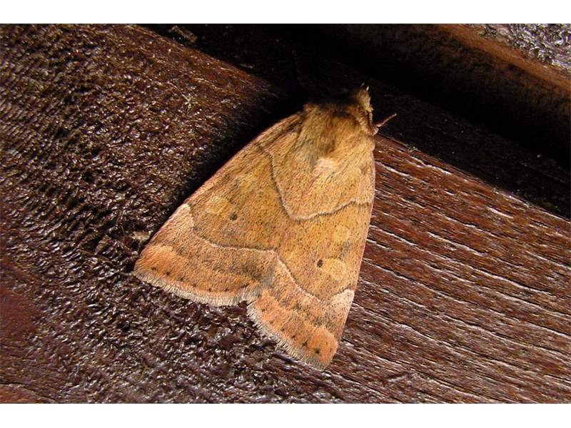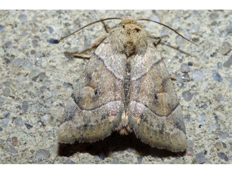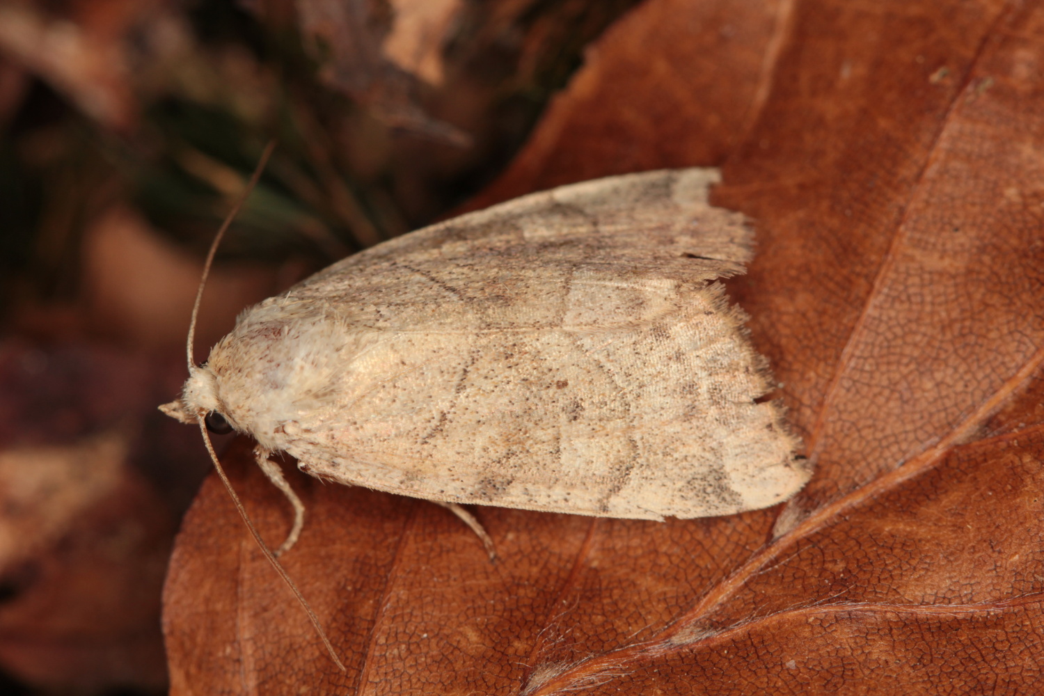 Vorderflügel weißbraun, gelbbraun oder rotbraun, mit mehr oder weniger eingestreuten schwarzen Schuppen. Die innere Querlinie gerade, vom Vorderrand schräg zum Hinterrand, die äußere Querlinie in einem deutlichen Bogen verlaufend; das so eingefasste Mittelfeld ist am Vorderrand sehr breit, am Hinterrand sehr schmal und meist dunkler gefärbt als Basal- und Außenbereiche des Flügels, selten schwarz. Ring- und Nierenmakel im Mittelfeld meist sehr undeutlich; im unteren Bereich der Nierenmakel stets ein schwarzer Punkt. Vor dem Saum eine Reihe länglicher schwarzer Punkte. Hinterflügel hellgrau. Die Unterseiten der Flügel mit kontrastarmer, hellerer Zeichnung.