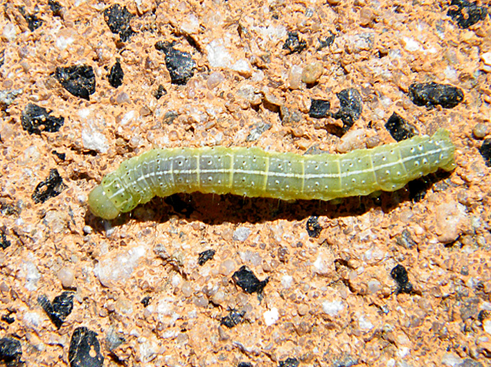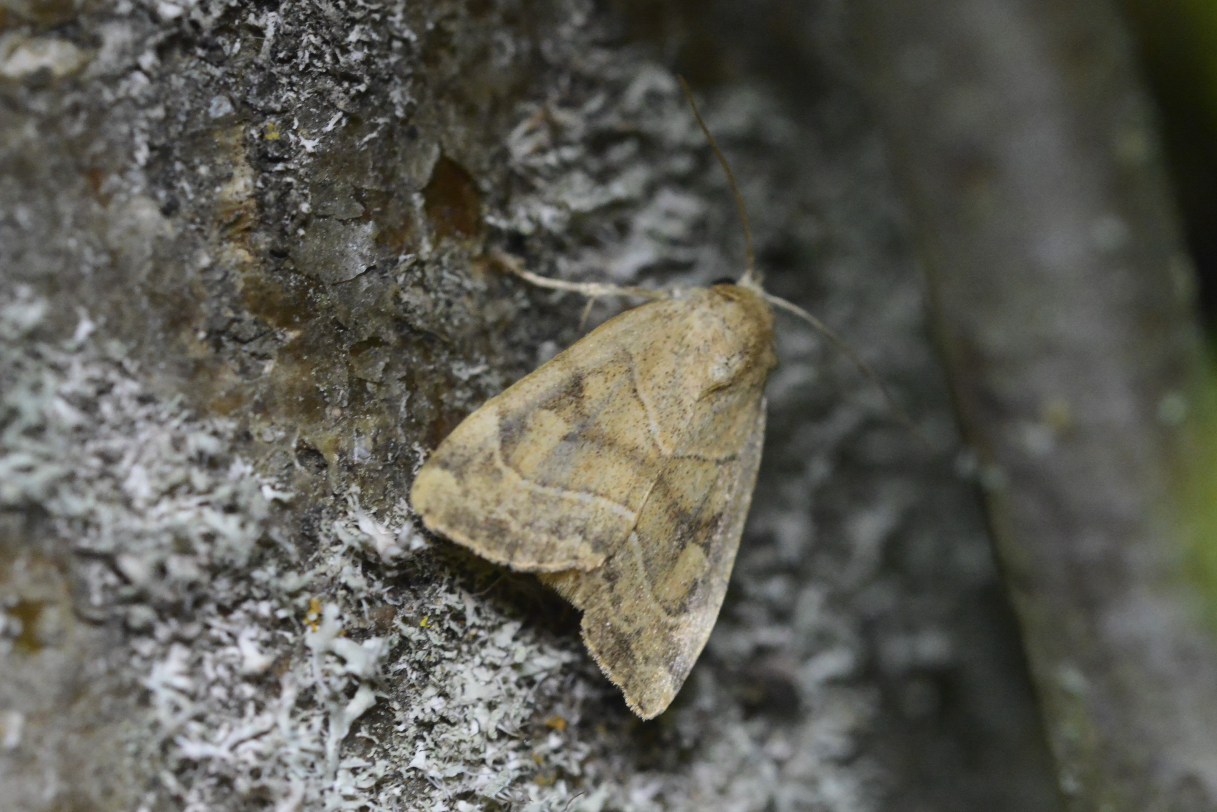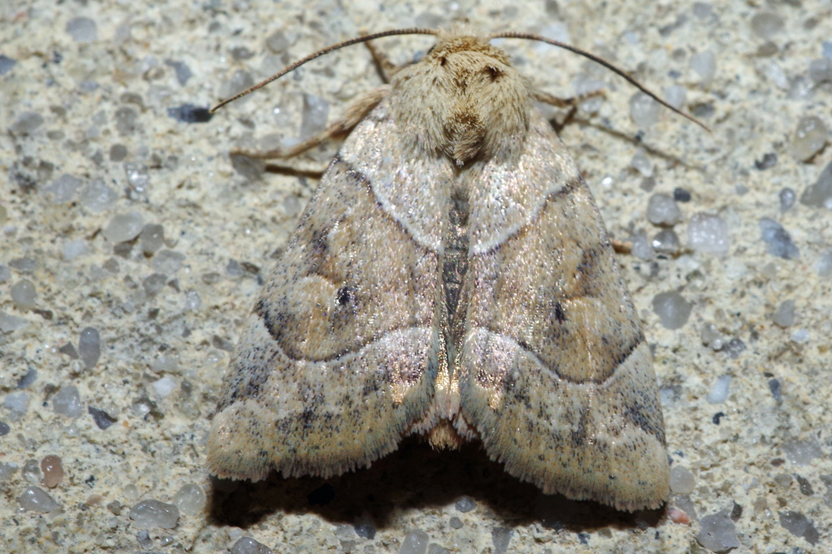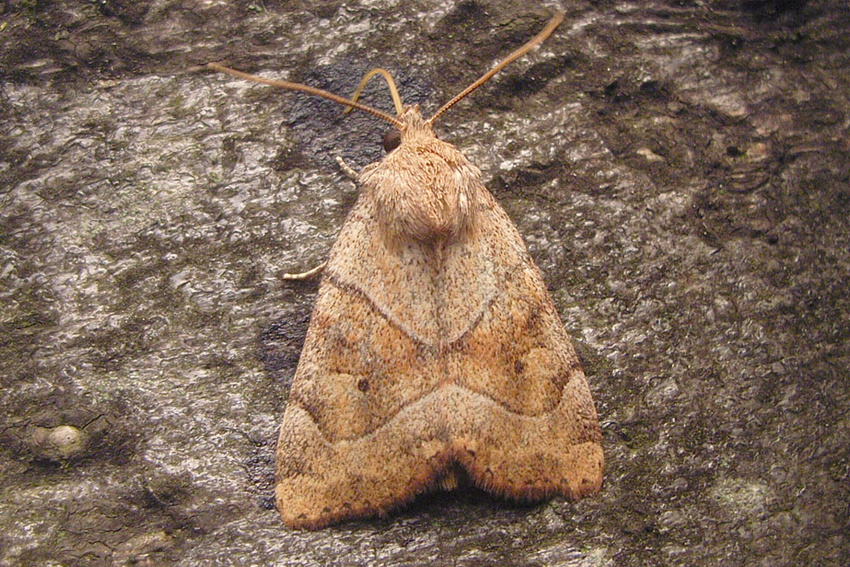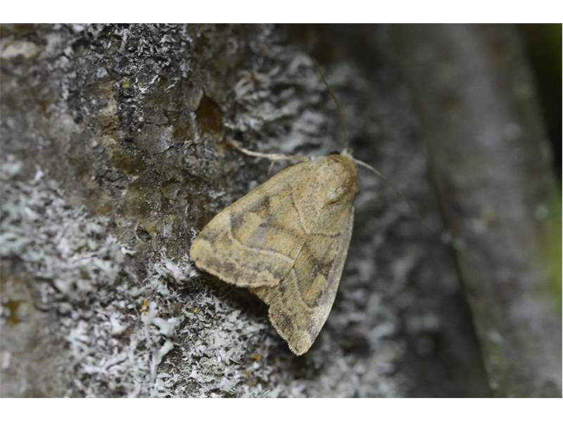Vorderflügel weißbraun, gelbbraun oder rotbraun, mit mehr oder weniger eingestreuten schwarzen Schuppen. Die innere Querlinie gerade, vom Vorderrand schräg zum Hinterrand, die äußere Querlinie in einem deutlichen Bogen verlaufend; das so eingefasste Mittelfeld ist am Vorderrand sehr breit, am Hinterrand sehr schmal und meist dunkler gefärbt als Basal- und Außenbereiche des Flügels, selten schwarz. Ring- und Nierenmakel im Mittelfeld meist sehr undeutlich; im unteren Bereich der Nierenmakel stets ein schwarzer Punkt. Vor dem Saum eine Reihe länglicher schwarzer Punkte. Hinterflügel hellgrau. Die Unterseiten der Flügel mit kontrastarmer, hellerer Zeichnung.