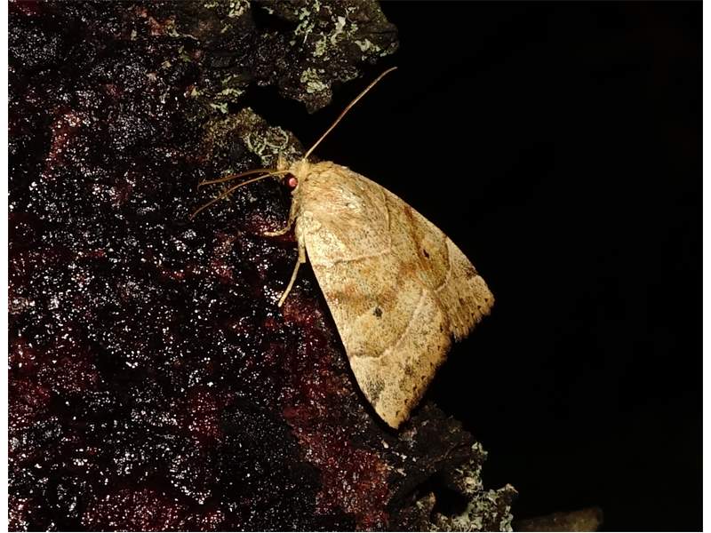 Die Falter fliegen von Ende Juli bis September und werden nachts von künstlichen Lichtquellen angelockt. Sie saugen an Früchten und können gut mit alkoholischen Fruchtködern angelockt werden. Die Weibchen legen ihre Eier an Laubgehölze ab, wo diese überwintern. Die Larven entwickeln sich im Frühjahr. Sie sind im Mai bis Juni ausgewachsen, verlassen dann die Gehölze und verpuppen sich in einem Gespinst am Boden.