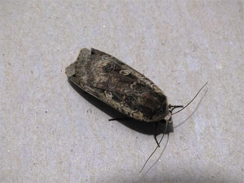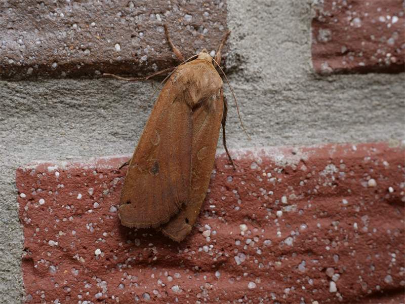 Vorderflügeloberseite farblich sehr variabel von grau über braun oder rotbraun bis schwarz. Im Mittelfeld nahe des Flügelrandes liegt das meist hell umrandete und oft grau gefüllte Ringmakel sowie das dunkel gefüllte Nierenmakel, Zapfenmakel fehlt. Vor der Vorderflügelspitze am Beginn der Wellenlinie ein deutlicher schwarzer Fleck. Querlinien und Wellenlinie oft nur schwach ausgeprägt.
