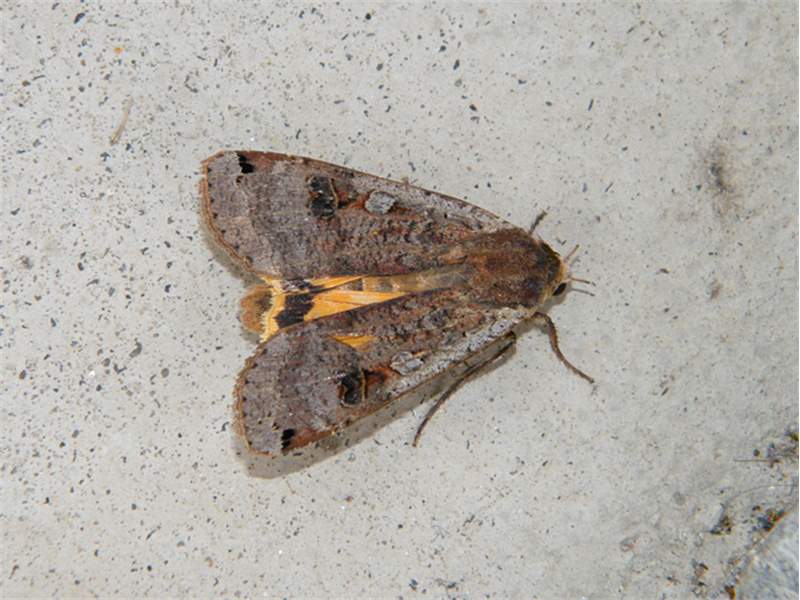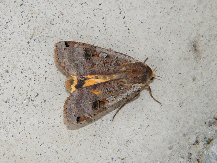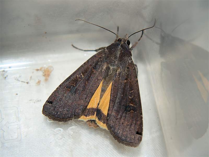Hinterflügel gelb mit schmalem schwarzen Saum und wieder gelbem Flügelrand, kein dunkler Mittelstrich.