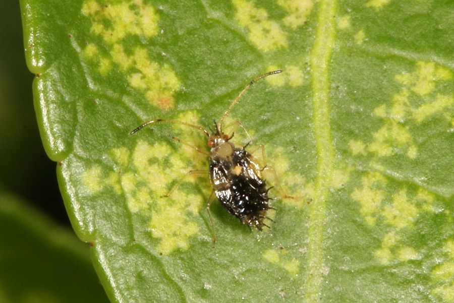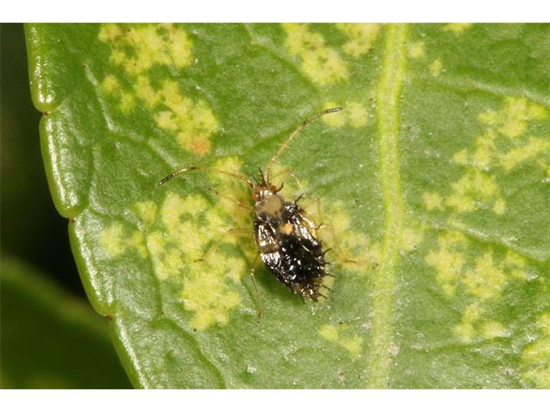 Larve der Andromeda-Netzwanze (Stephanitis takeyai). Chemnitz-Adelsberg (Deutschland, Sachsen, Stadt Chemnitz) im September 2013.