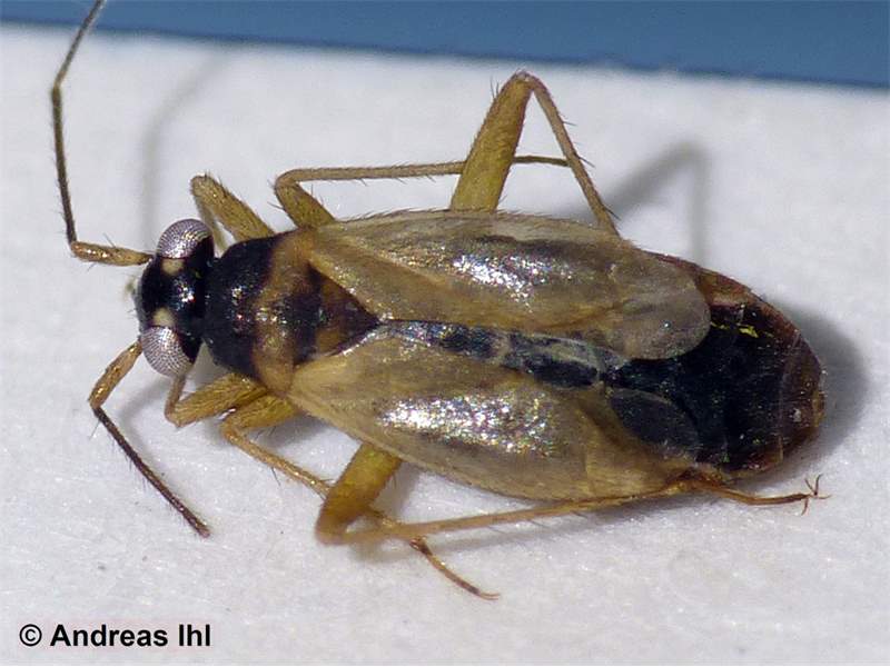 Kopf: oben am Innenrand der Augen jeweils ein heller Fleck; erstes Fühlersegment land, hell und mit einzelnen langen Borsten.