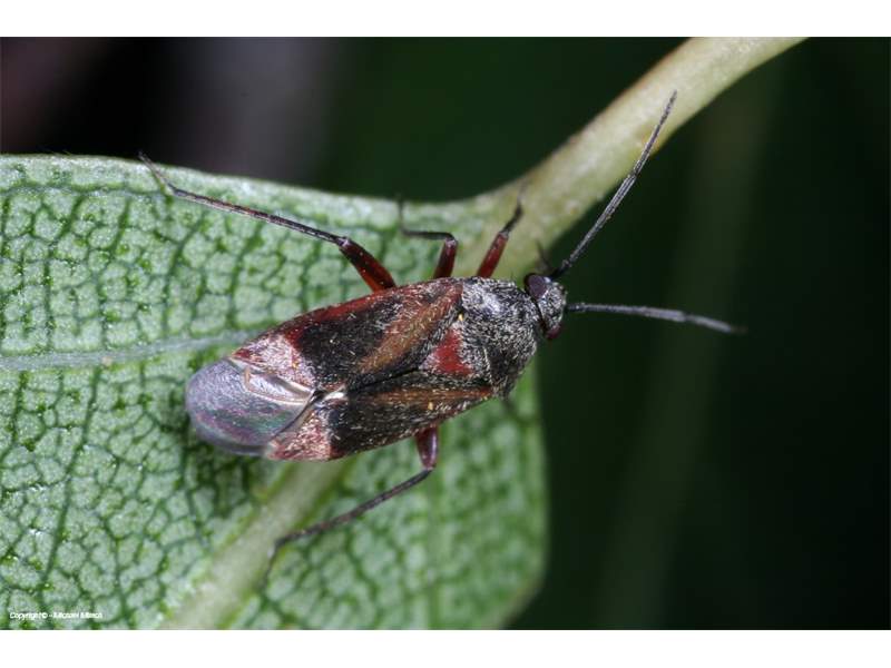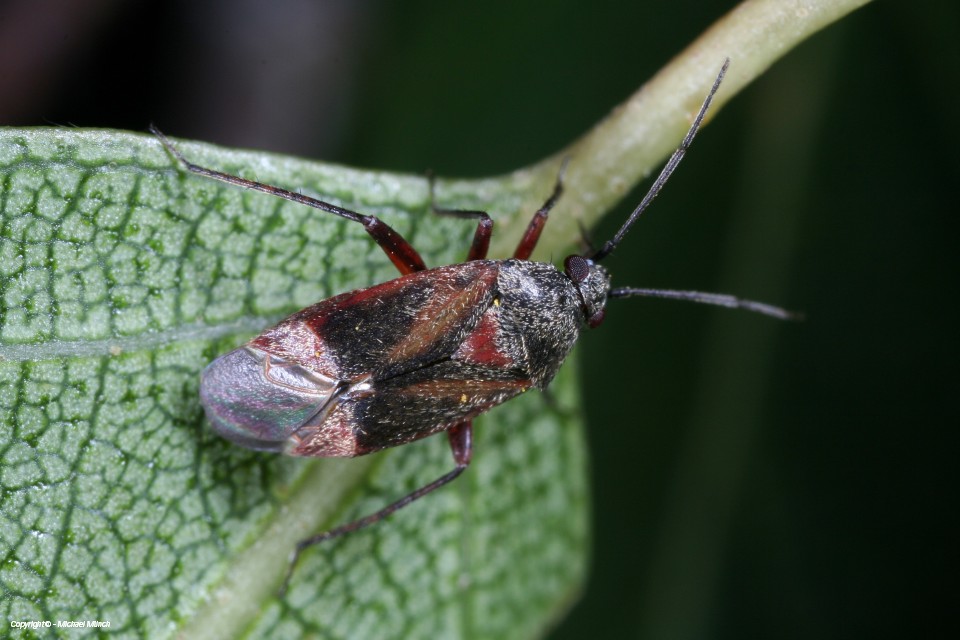 Weibchen von Psallus montanus, Muldental südlich von Thierbach (Deutschland, Sachsen, Landkreis Mittelsachsen), 01.06.2009