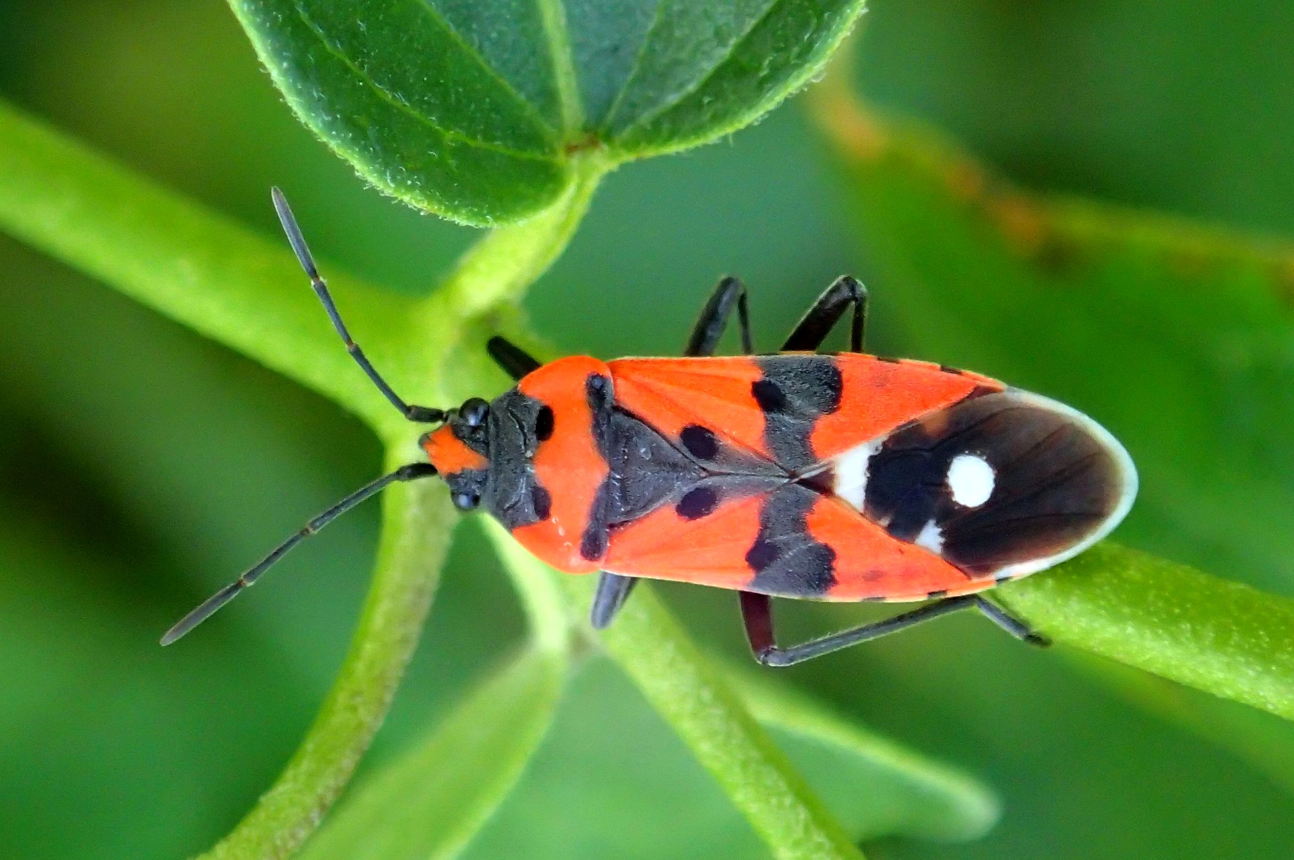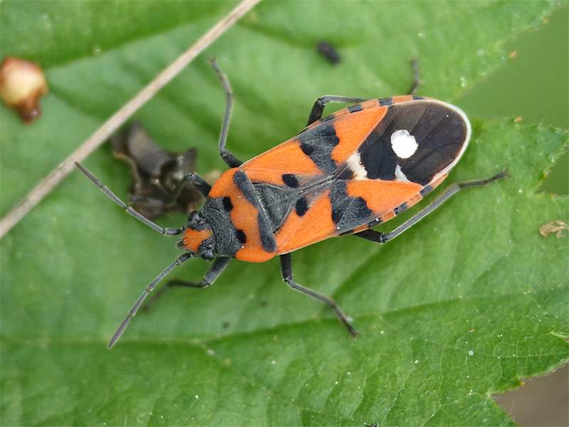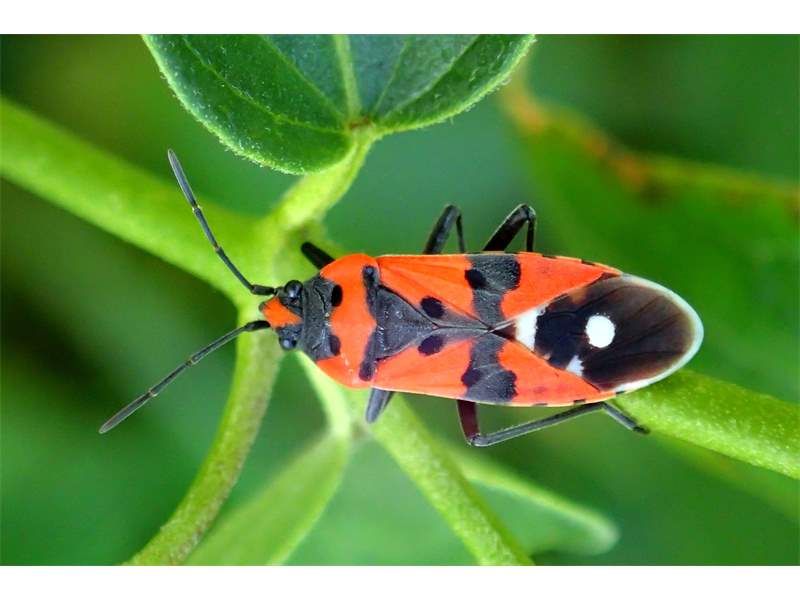 Lygaeus simulans): Fühlerhöcker nach vorn schräg nach Außen abfallend, Haare auf dem Schildchen spärlicher aber lang aufrecht abstehend.