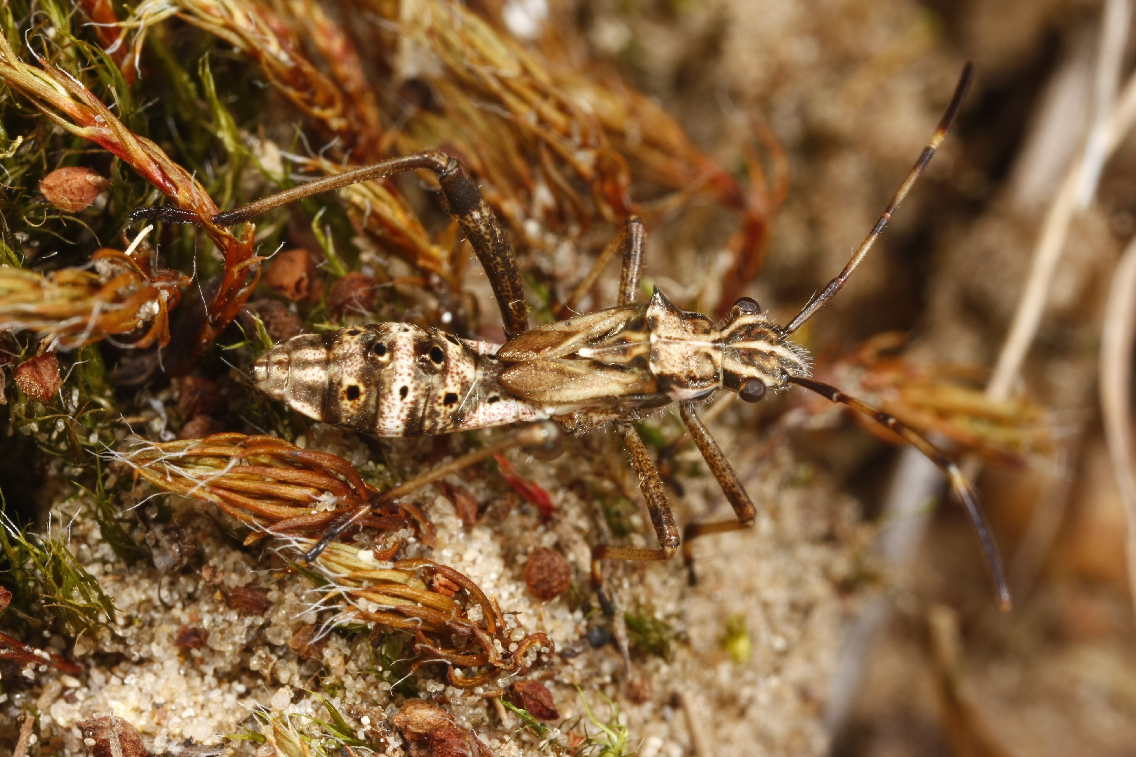 Letztes (5tes) Larvenstadium von Camptopus lateralis. Wie bei anderen Krummfühlerewanzen sind die Larven ameisenähnlich. Kroatien, Istrien, Sveti Lovreč. Anfang August 2022