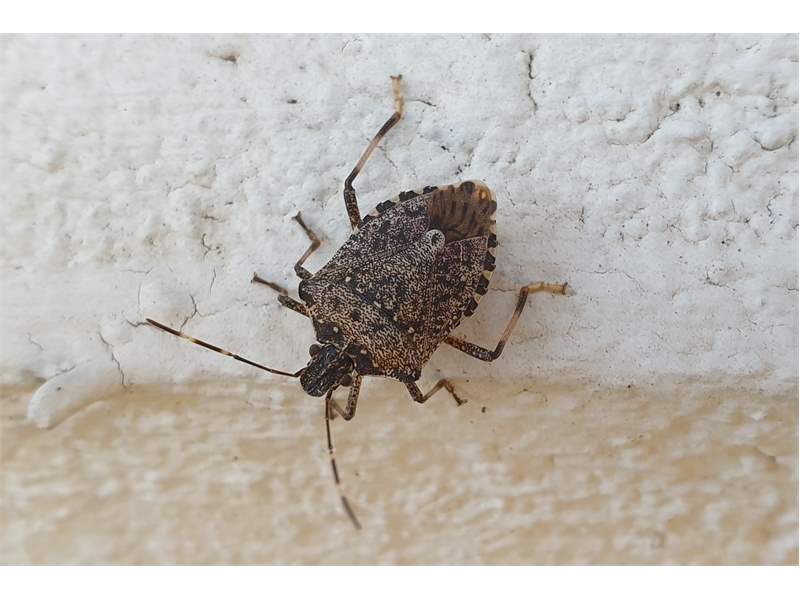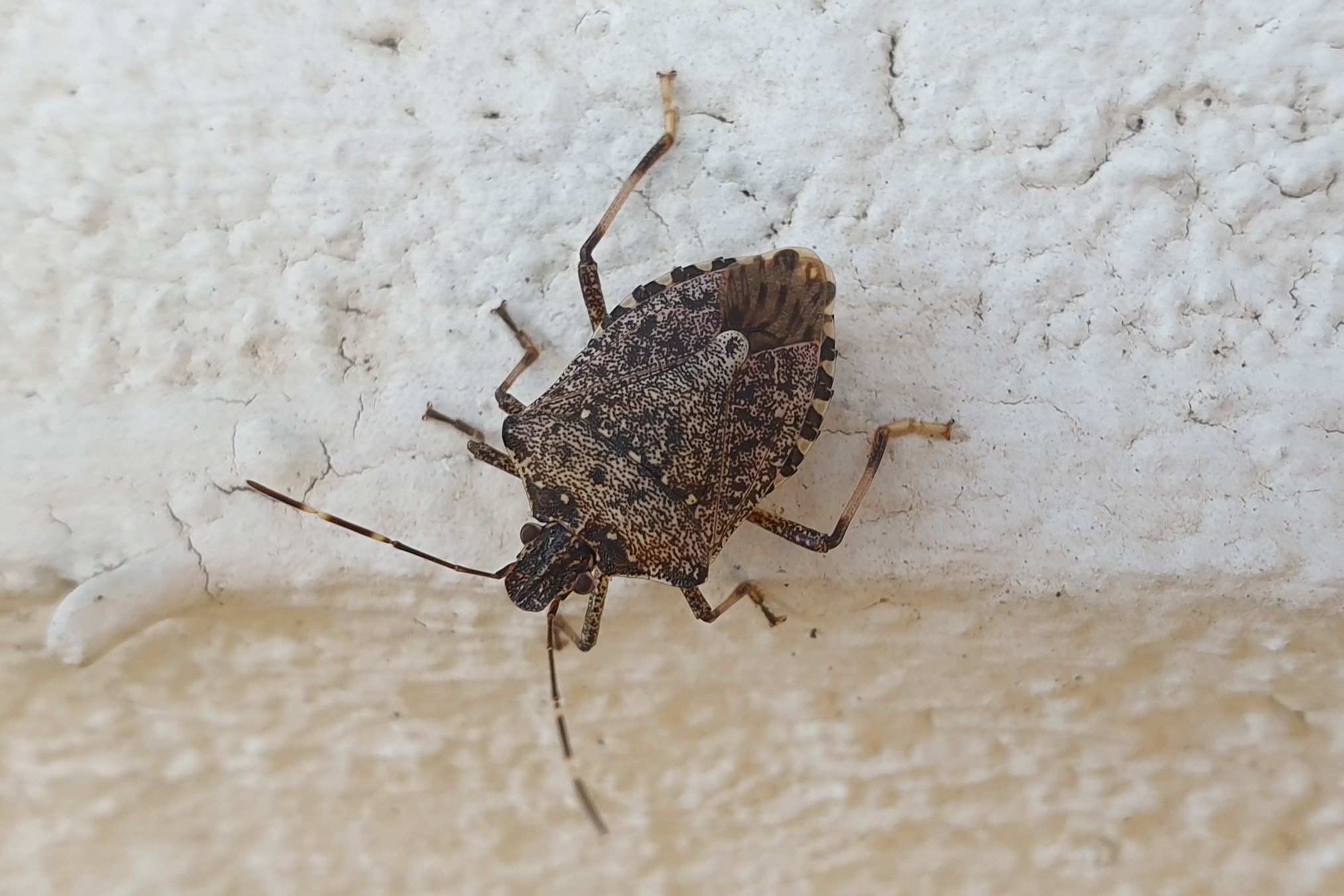 Männchen von Halyomorpha halys. Bagnolo San Vito (Italien, Lombardei, Provinz Matova) im Oktober 2017