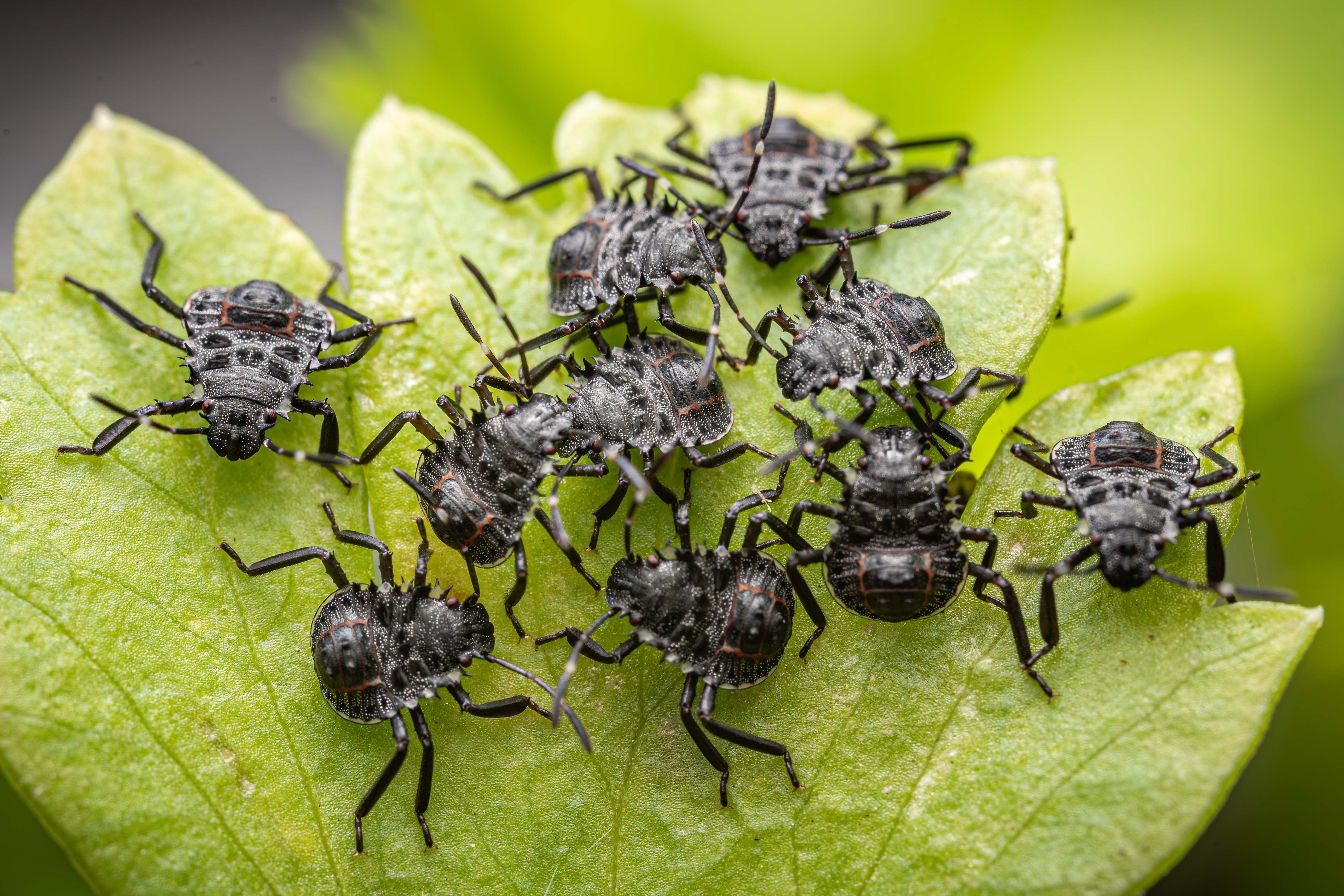 Ein natürlicher Gegenspieler in Ostasien ist die Samurai-Wespe (Trissolcus japonicus), welche die Eier der Marmorierten Baumwanze parasitiert.