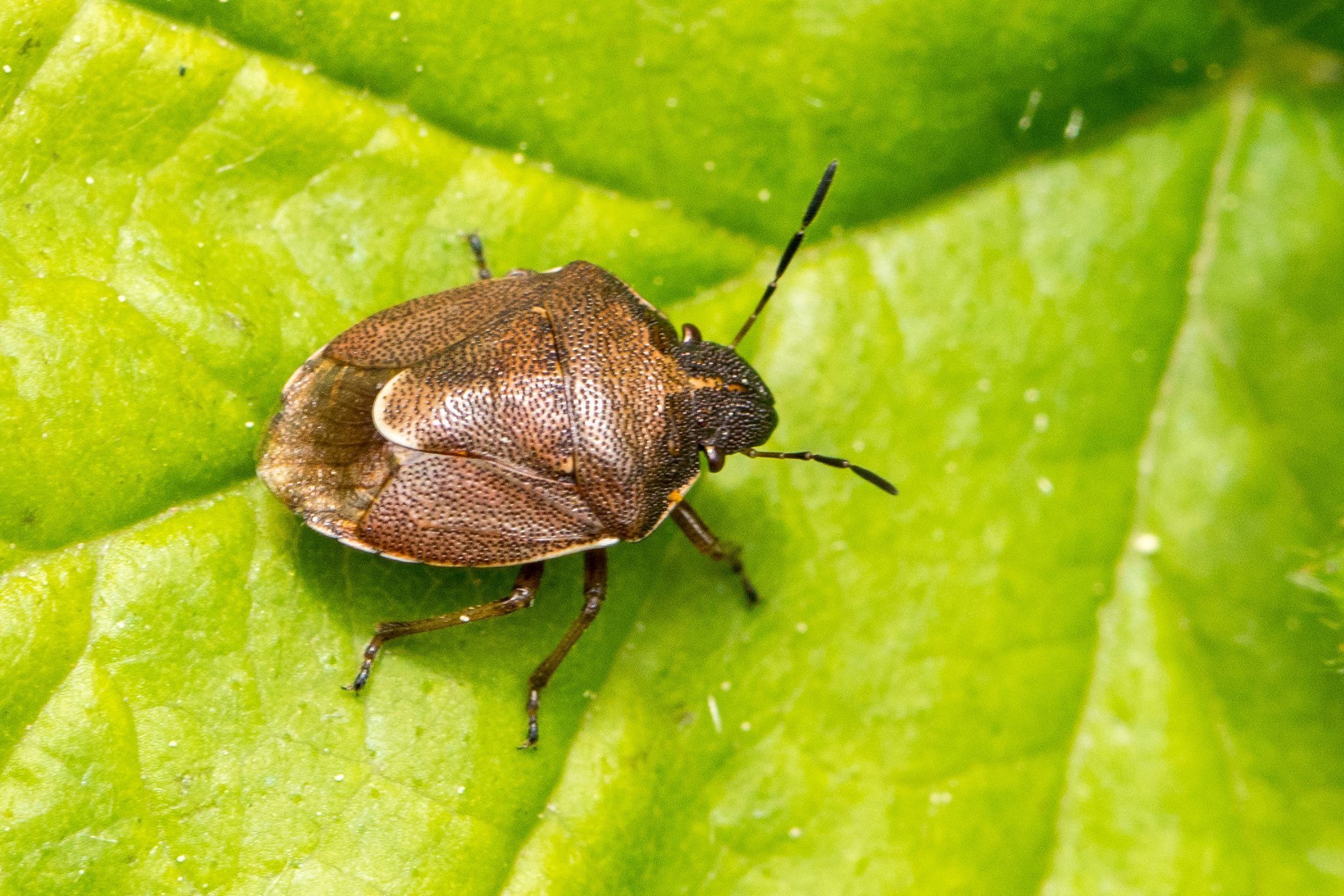 Thorax: glänzend braun gefärbt mit hellen seitlichen Vorderrändern.