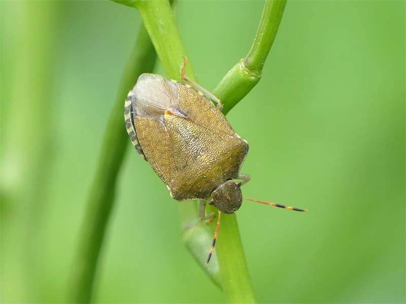 Wichtigstes Merkmal der größtenteils gleichfarbig braunen Baumwanzenart ist die markante Fühlerfärbung: das letzte und vorletzte der orangen Fühlerglieder besitzt einen breiten scharzen Ring am vorderen Ende. Der Kopf läuft nach vorn zugespitzt aus, wobei der Rüsselansatz nicht vertieft sitzt. Der Halsschild ist an den vorderen Außenkanten hell gerandet. Der Kopf, Halsschild, Schildchen und Flügeldecken sind einfarbig matt glänzend bräunlich mit dunklen Punktgruben. Der häutige Teil der Flügeldecken ist hellbäunlich gefärbt. Der Aussenrand des Hinterleibs zeigt abwechselnde helle und dunkte Abschnitte.