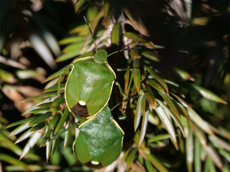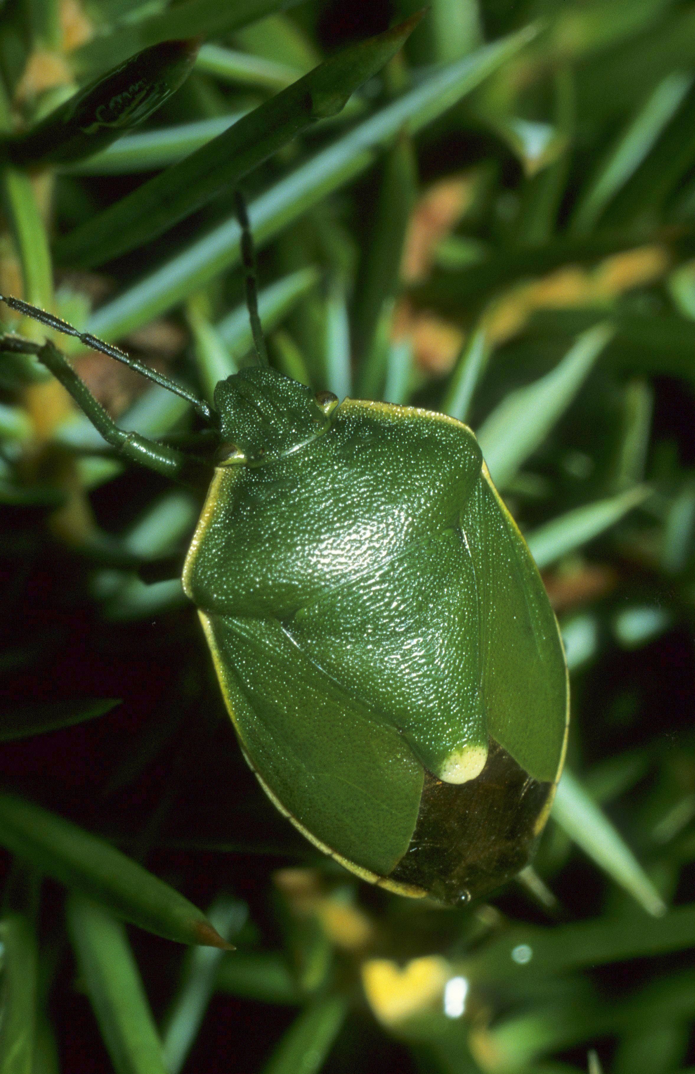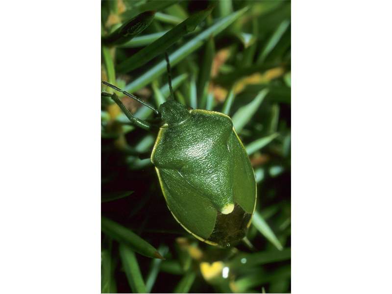 Ähnliche Arten: Die Grüne Stinkwanze (Palomena prasina) und Palomena viridissima ohne hellen Rand. Bräunliche Herbstformen nur anhand der Rüssellänge von der Kiefern-Baumwanze (Chlorochroa pinicola) unterscheidbar.