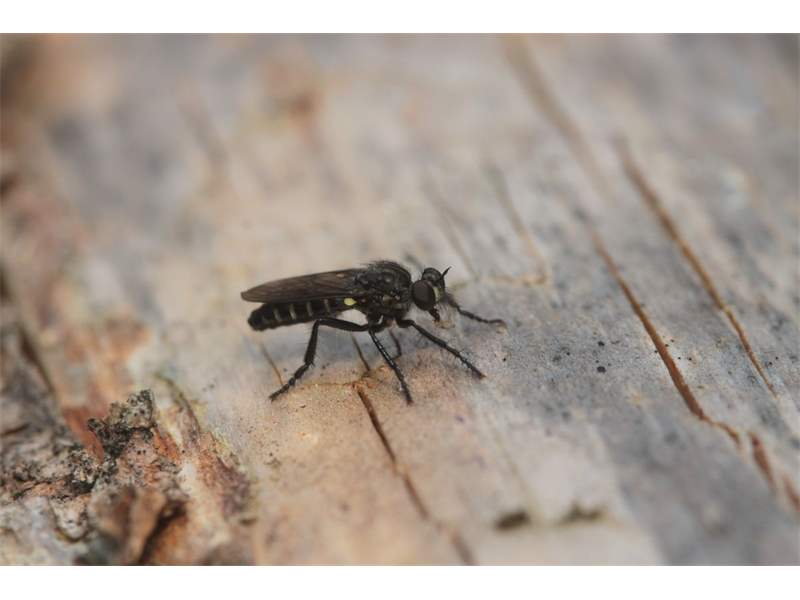 Die Adulten fliegen von Anfang Mai bis Anfang August. Zur Jagd sitzten sie an Baumstubben und Baumstämmen in vertikaler und horizontaler Lauerposition an. Die Eier werden ins Bodensubstrat abgelegt (Wolff et al. 2018).