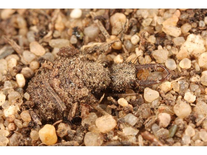 Ameisenlöwe, Larve von Myrmeleon formicarius. Großenhain, Kleinraschützer Heide im September 2013
