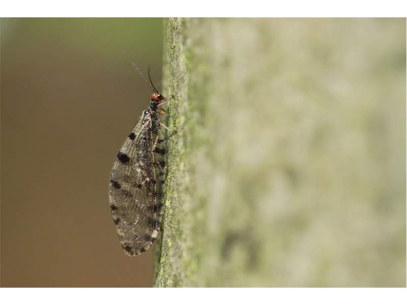 Thorax: Flügel breit, mit dunklen Flecken (das Fleckenmuster ist variabel).