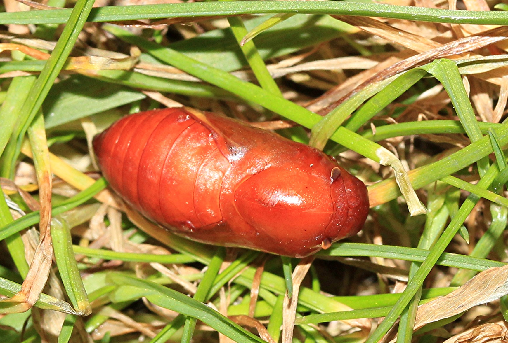 Puppe der Rostbinde am 24.02.2017, gezüchtet aus dem Ei vom 27.08.2016 aus Nochten. Die Zucht gelang ohne Diapause.